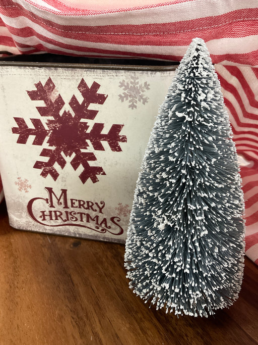 Only 2 left!Snowy bottle brush Christmas trees in various sizes and shades of green