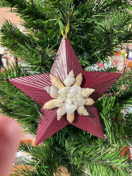 Only 1 left!Metal Star Ornament decorated with seashells. 5” x 5”