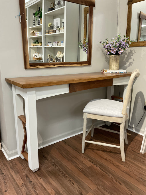 Only 1 left!Tall standing desk. Top is made from an early 1900s piece of wood. Completed with poplar legs and desk drawer. 67"x18"x37"