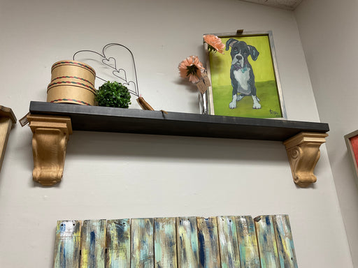 Only 1 left!Solid wood shelf, black stain. Brackets not included
