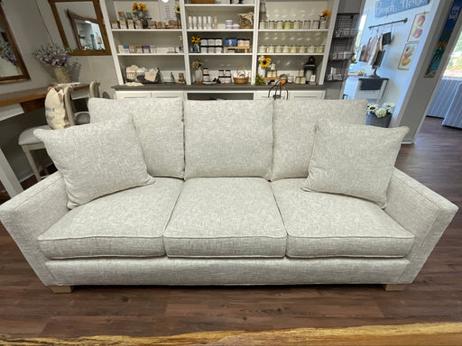 Only 1 left!Our Artisan Home Collection presents this off white fabric sofa. This sofa features welted 3 over 3 seat cushions, with a track arm and light stai...