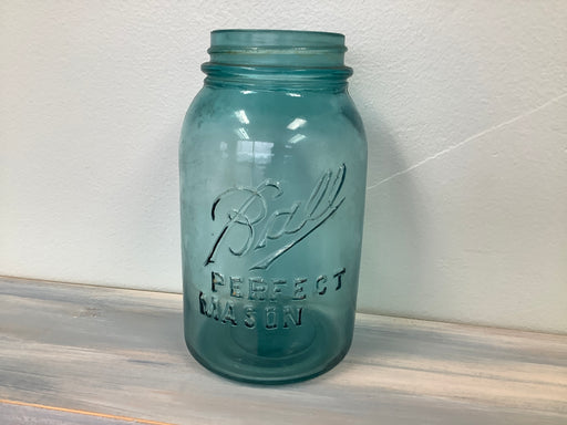 Only 1 left!Vintage 1910’s blue mason quart jar