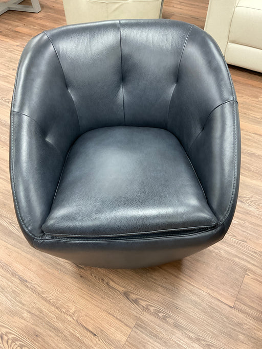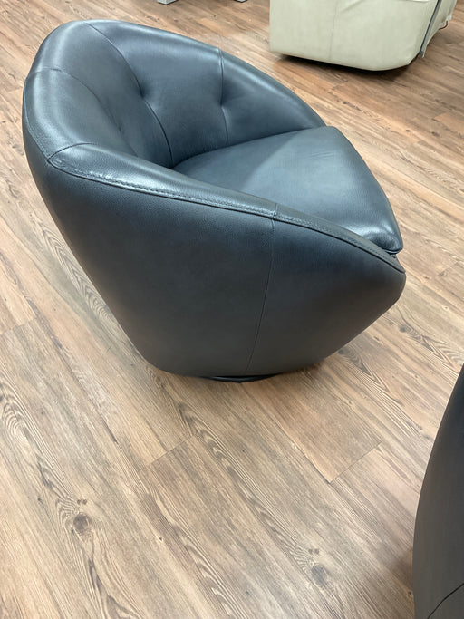 Only 2 left!Artisan Home Collection - Wade swivel chair in Midnight leather. 26" x 24" x 30”