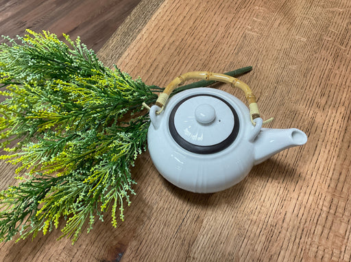 Only 1 left!White porcelain teapot with bamboo handle 8”x6”x4”
