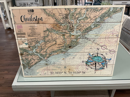 Only 1 left!Laser print map of Charleston SC on pine wood boards. 24” x 18” Wall hanger included.