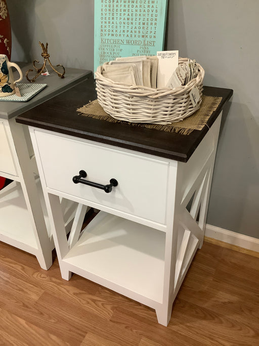 Only 1 left!Made from poplar and birch woods. Soft close drawer. Stained top and white painted base. 21”x19”x31”