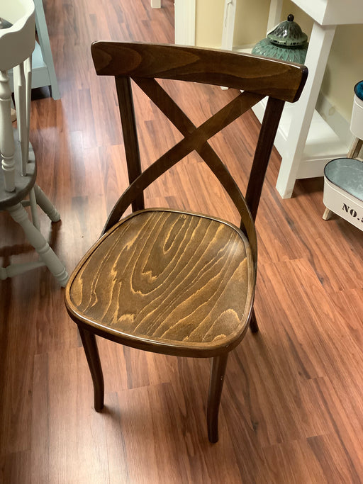 Only 3 left!Wood chair dark stain. 15”x16”x33”. Seat height 18”