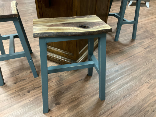 Only 4 left!Pine wood base painted in Dixie Belle stormy seas and distressed. Top is a black walnut wood sealed in a clear Rubio finish. 17" x 10" x 24”