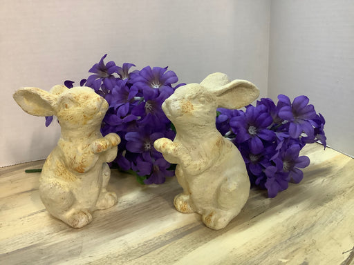 Only 2 left!Begging Easter bunny faux cement figurine- 5”x4” - distressed cream and gold color