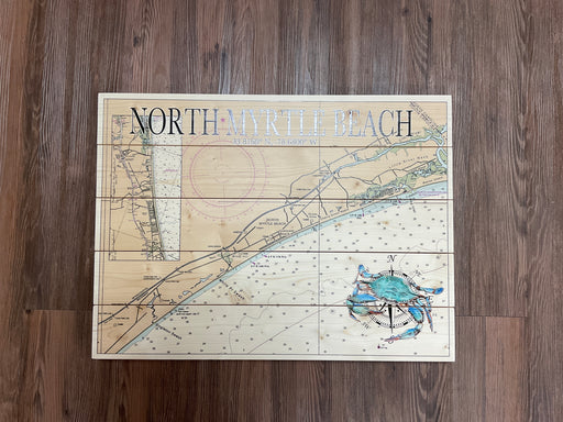 Only 1 left!Wooden map of North Myrtle Beach laser printed on pine wood boards. Heavy duty wire hanger. 24” x 18”