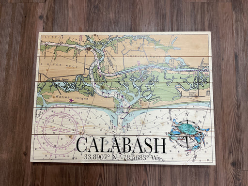 Only 2 left!Wooden map of Calabash laser printed on pine wood boards. Heavy duty wire hanger. 24” x 18”