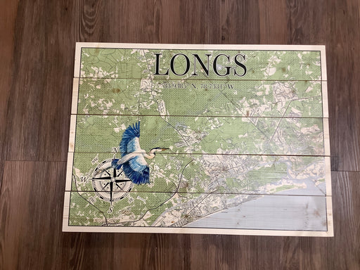 Only 1 left!Wooden map of Longs laser printed on pine wood boards. Heavy duty wire hanger. 24” x 18”