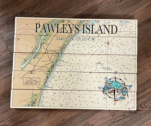 Only 1 left!Wooden map of Pawleys Island laser printed on pine wood board. Heavy duty wire hanger. 24” x 18”