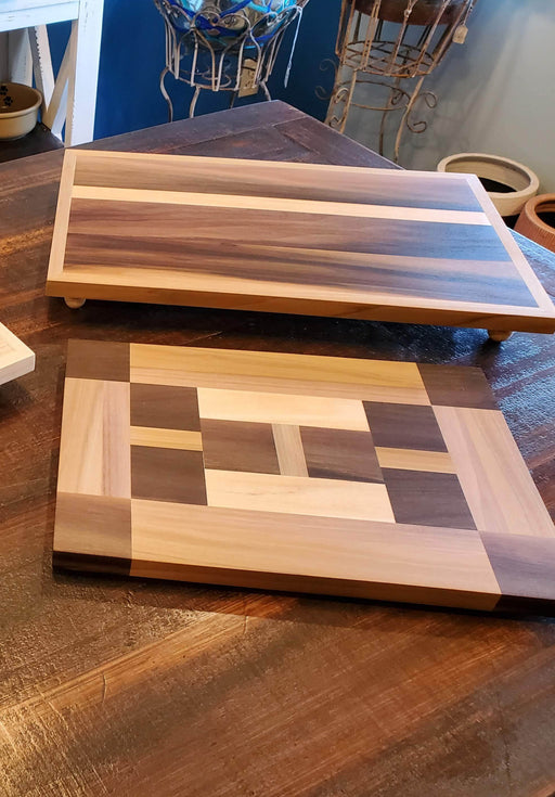 Only 1 left!Hand made wood serving tray with various woods With small legs - 16"x10"x2" Square shapes - 13"x9"x1"