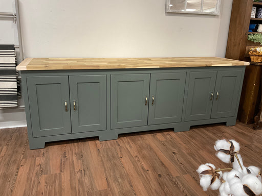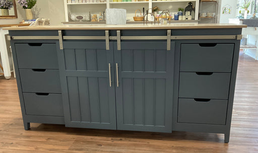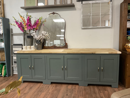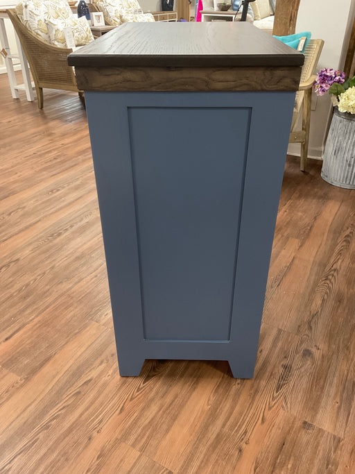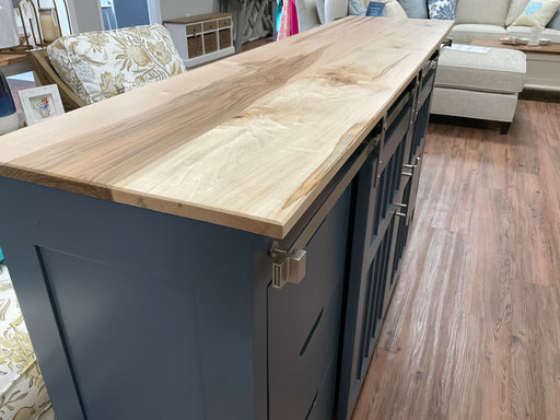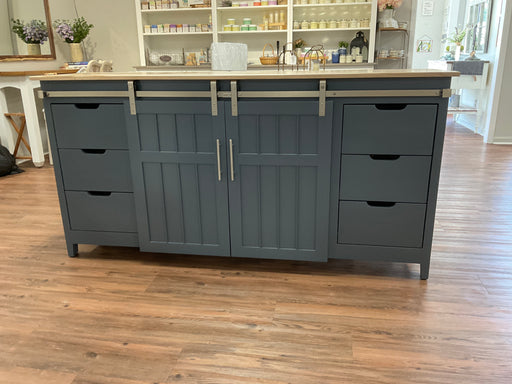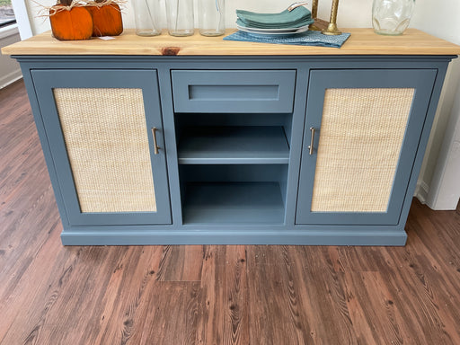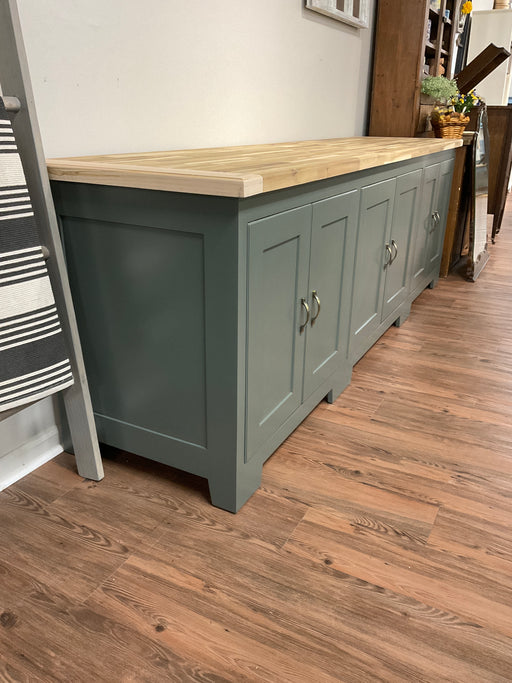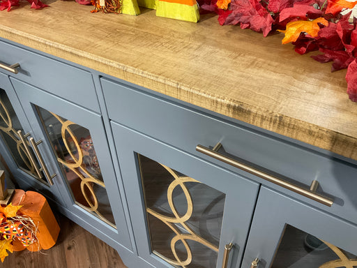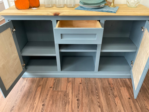 Only 1 left!Our Ludington buffet design features sliding doors with 6 drawers and 2 adjustable shelves. Natural Maple top sealed and custom blue painted base ...