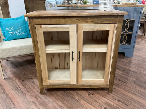 Only 1 left!Our Novi style storage cabinet design features inset doors and an open leg base. This model has two glass doors with one adjustable shelf in a rus...
