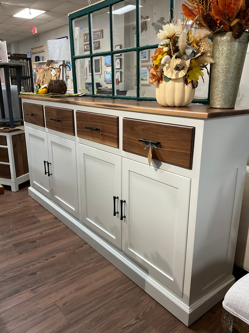 Only 1 left!Our Grand Blanc style buffet features four panel doors and four soft close drawers. Walnut wood top and drawer fronts are sealed in a clear finish ...
