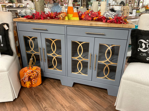 Only 1 left!Our Coldwater buffet features a low height cabinet with 2 doors, drawer and open storage. Great as an entertainment console. Base is finished in G...