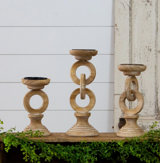 Only 2 left!Chain link wood candle holder. 3 sizes