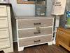 Our Holland dresser is a shorter 3 drawer dresser with a wood top and matching wood face drawer fronts. This model features an open leg base finished in summer white. Wormy maple top and fronts stained in sundry. Soft close drawers with standard black hardware. 34” x 19” x 27.5”