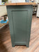 Our Brighton style buffet features a beautiful large wine rack centered between overlay glass doors. The base is finished in Shade Grown SL. The top is made from white oak live edge and is filled in with some epoxy and cleared in a dull finish MCK. Wine rack is made from wormy maple and stained in antique oak. The dimensions are 74” x 18” x 38”