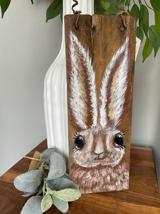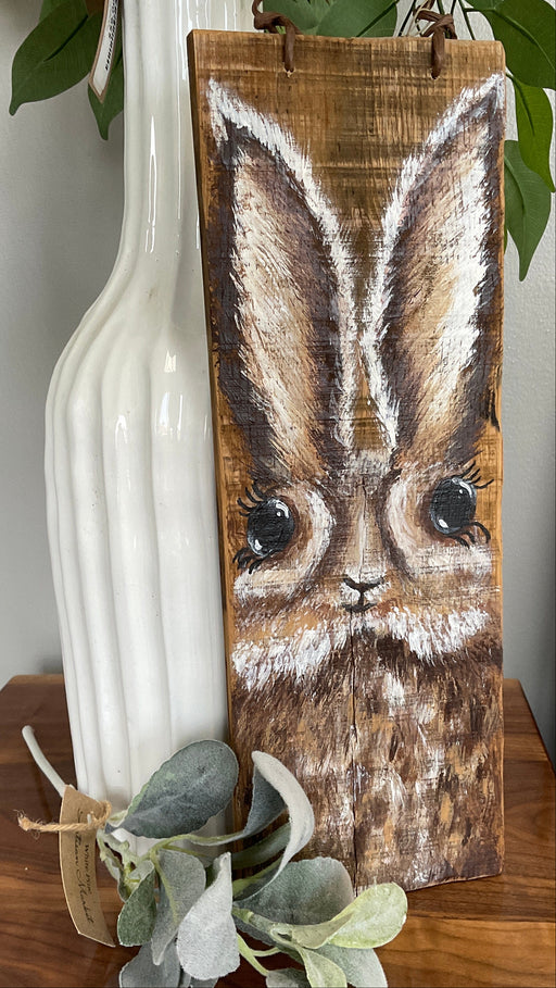 Hand painted rabbit on repurposed wood board.