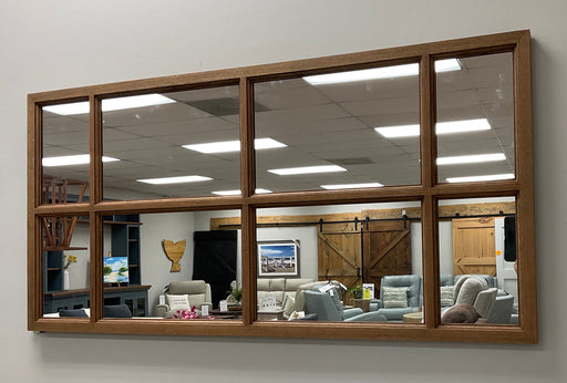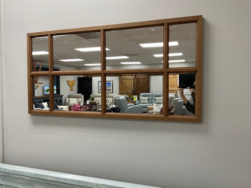Cherry wood framed mirror.  Wood is stained in Golden Ash (DB).  Grid pattern has detail edges to mimic window panes.  Includes wall cleat for hang...