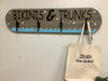 Hand crafted 4 hook wood wall hanger. 5 3/4” cast iron boat cleats. 42” x 10”