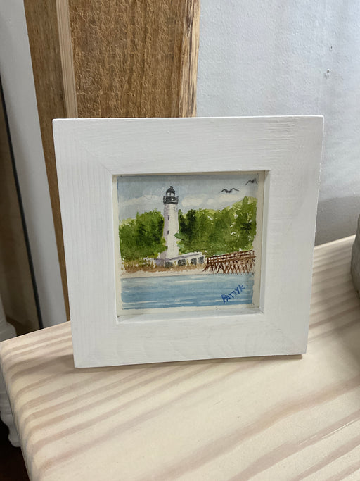 Out of stockHand painted by local artist. Framed in wood. Overall 5”x5”