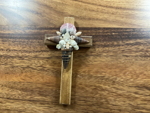 Out of stockWood cross hand decorated with shells. 8”x5”