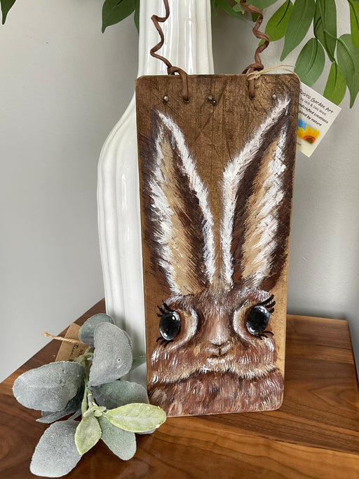 Only 1 left!Hand painted rabbit on repurposed wood board.