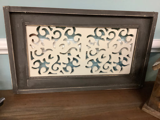 Only 1 left!Decorative white wood panel framed in solid black wood frame.