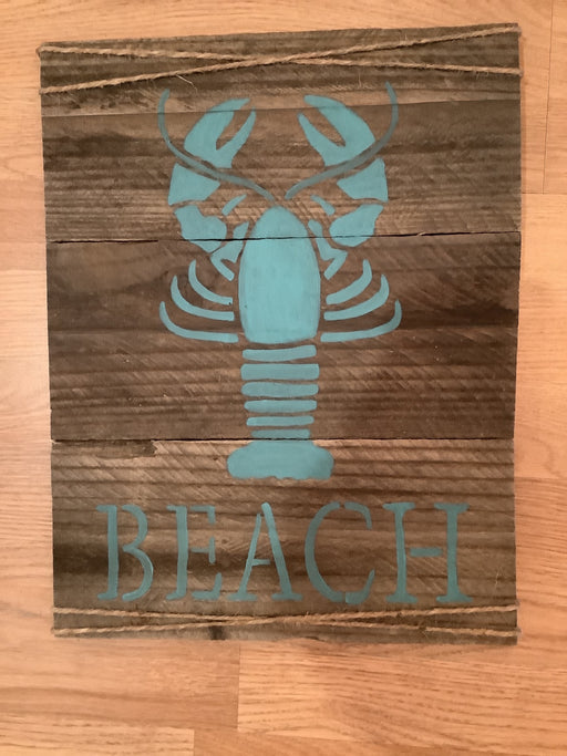 Only 1 left!Teal painted lobster on distressed wood boards. 12”x16”