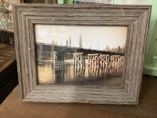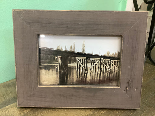 Only 1 left!4”x6” photo of wood bridge in brown distressed easel frame