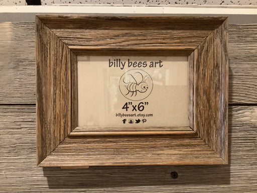 Only 1 left!Dark blue wood picture frame with barn wood picture. Picture size 8”x10”