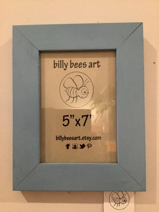Only 1 left!Wood frame painted in light blue Dixie. Holds a 5"x7" photo.