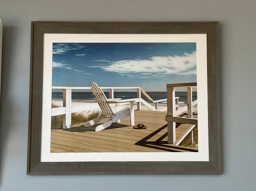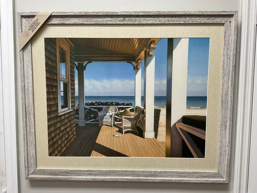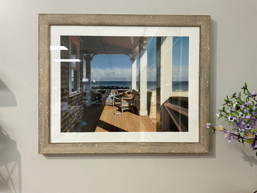 Only 1 left!Framed and matted Daniel Pollera sun deck print. Weathered wood frame with mat and anti-reflective glass.