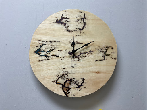 Only 1 left!Plywood clock with fractal burn technique sealed with a flood coat.