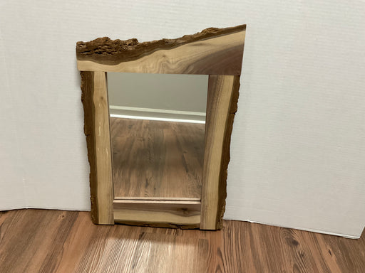 Only 1 left!Live edge walnut wood framed mirror. Wood is clear coated. Overall size, 14"x21"