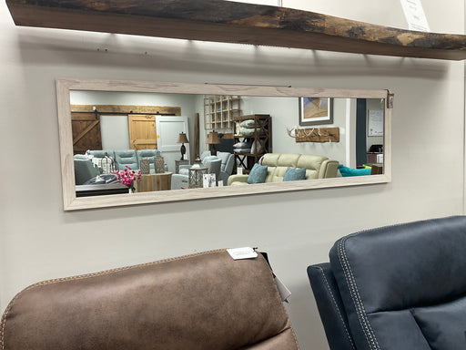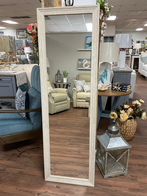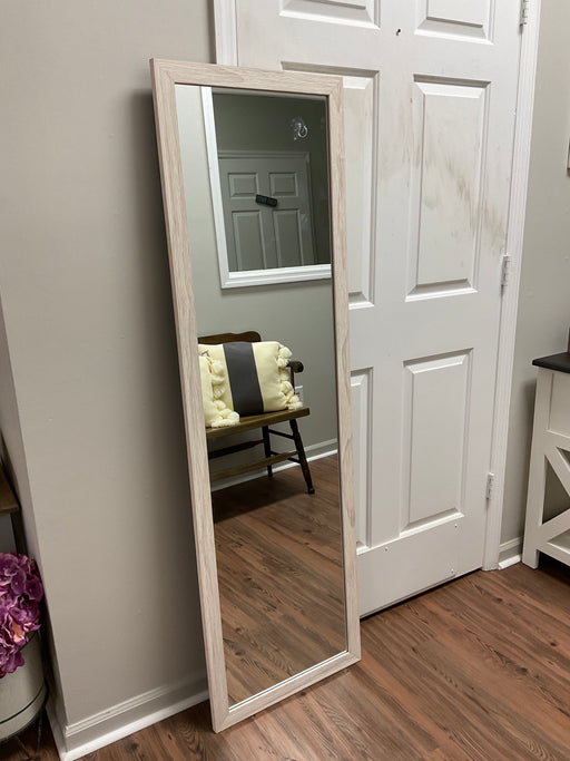 Only 1 left!Large mirror with wood frame, 20” x 64” with bleached wood frame, light tan and white, distressed.
