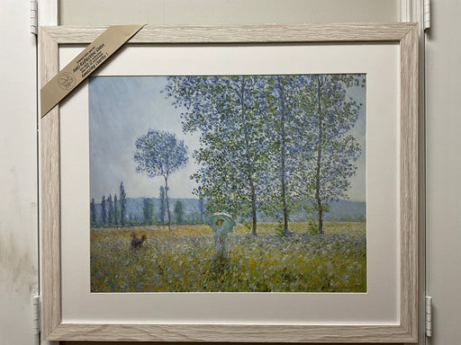Only 1 left!Monet Field in Spring print with white mat in white wooden distressed frame with anti reflective glass. 35” x 30”