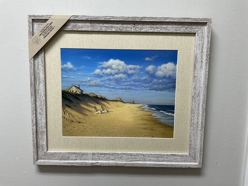 Only 1 left!Daniel Pollera nantucket shore framed print. Driftwood wood color frame with mat. Overall size. 31.5” x 25.5”