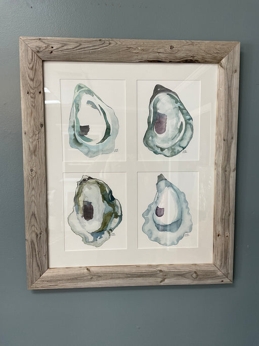 Only 1 left!Four Oysters matted print, natural solid wood frame 26”x31”