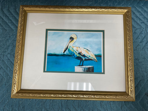 Only 1 left!Gold framed double matted pelican print. 16" x 13”