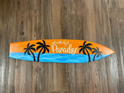 Only 1 left!Hand made and painted wood surfboard sign. Various colors and styles with "Just another day in paradise" written on them. Includes wall hanger. ...