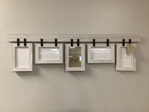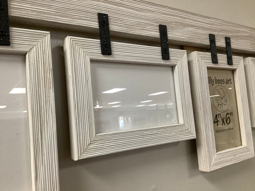 Only 1 left!5 4"x6" white wood frames. Metal brackets hold frames to 36" white wood bar