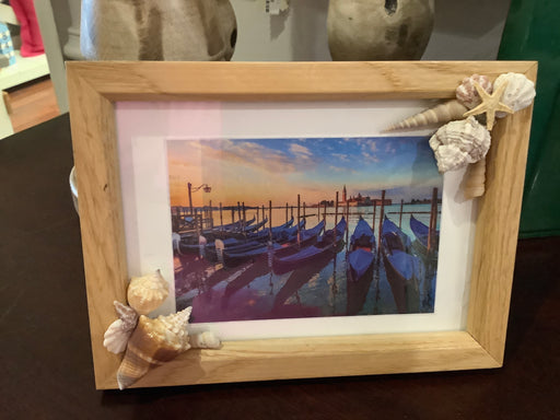 Only 1 left!Wood frame with decorative shells. Overall size 8 x 6”