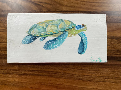 Only 1 left!Hand painted turtle on wood boards. 11"x19"