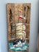 Hand painted sailboat with fractal burnings on repurposed old wood boards. Wall hanger included. 18” x 40”