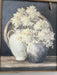 Natural walnut wood framed print of Golden Hydrangeas White by Julia Purinton. Includes wall hanger. 24"x30"